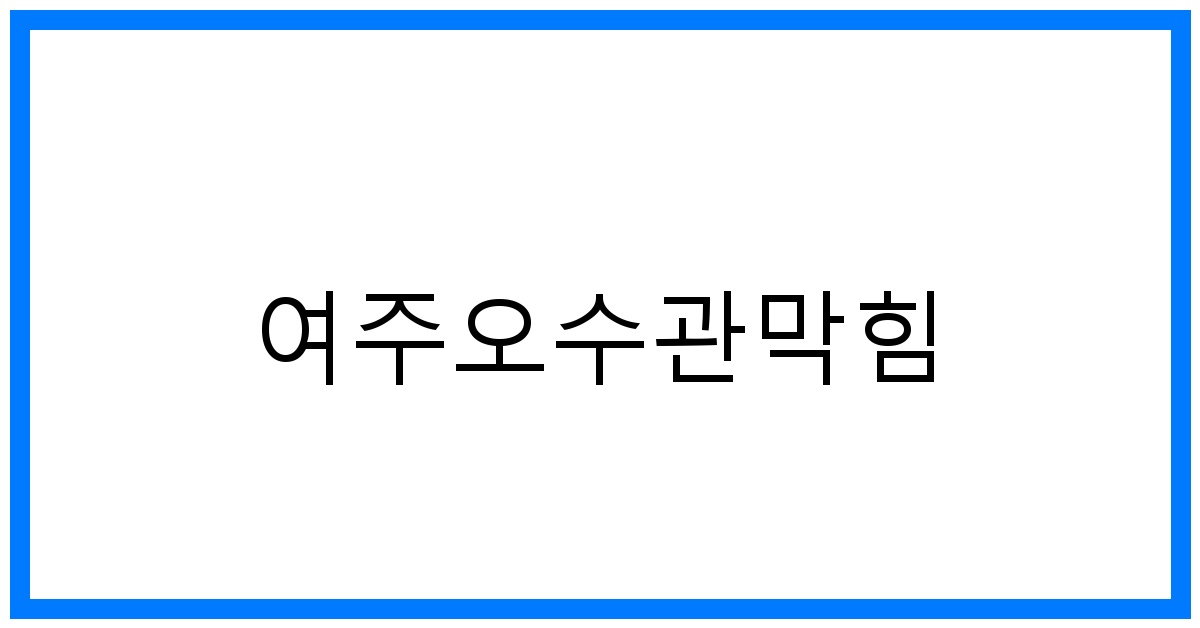 서론 여주오수관막힘 문제는 다양한 원인으로 발생할 수 있으며, 적절한 예방과